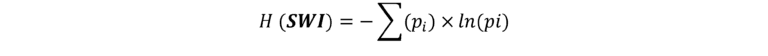 where, H=SWI, pi=Proportion of the total sample represented by species, i=proportion of species relative to the total number of species.